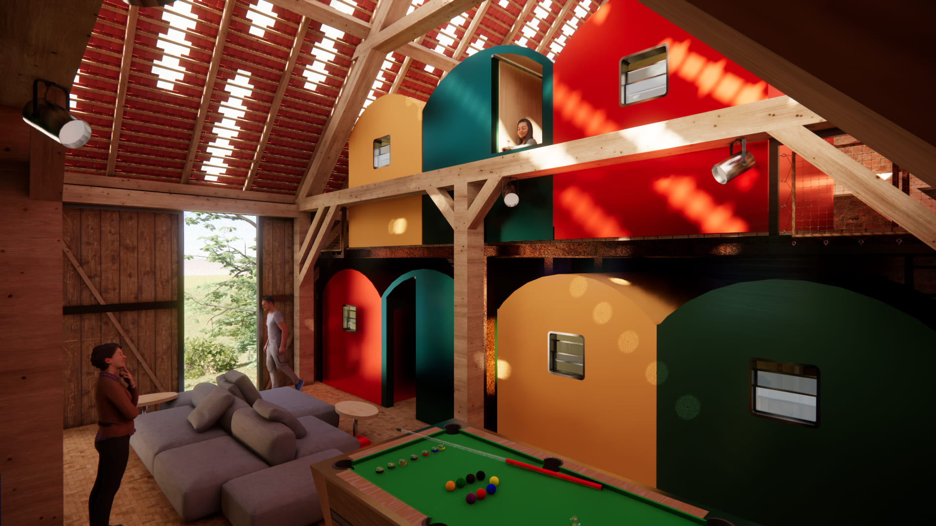 Typologisch geht es um Räume der Konzentration und Erinnerung ebenso, wie um Räume mit hoher Informationsdichte und Durchmischung. Von Räumen für die Vermittlung und Bildung, für die Gastronomie und Hotellerie, für den Verkauf und die Präsentation, für den Verkehr und Transit bis hin zu Verweilorten im öffentlichen Raum. Zu den Lerninhalten gehört es auch, Erzählungen entwickeln und in Räume einschreiben zu können, um so deren Benutzer*innen vielschichtige soziale, kognitive und sinnliche Erfahrungen zu ermöglichen. Nicht zuletzt lernst du, dass Gestaltungsaufgaben zuerst immer auch grundsätzliche Fragen nach dem Menschen und seinen Motivationen stellen: Wie wird Wahrnehmung zu Information? Wie funktionieren Zeichen, wie Kommunikation? Wie orientieren wir uns im Raum? Wie treffen wir Entscheidungen? Wie entstehen Orte?